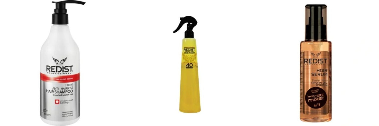 Pachet Redist pentru Îngrijirea Completă a Părului Șampon Anti Hair Loss Redist 500 ml Șamponul Anti Hair Loss Redist ajută la prevenirea căderii părului și restabilește hidratarea optimă a scalpului, datorită combinației de aminoacizi, multivitamine și extract din plante. Special formulat pentru a revitaliza și întări părul, acest șampon combate căderea excesivă și contribuie la sănătatea generală a părului. Mod de utilizare: Aplicați pe părul umed, masați delicat scalpul și lăsați să acționeze timp de 1-2 minute. Clătiți bine și repetați, dacă este necesar. Balsam Bifazic pentru Păr Miracle Oils 40 Overdose 400 ml Balsamul bifazic Miracle Oils 40 Overdose este soluția ideală pentru un păr protejat, strălucitor și mătăsos! Formula sa inovatoare, îmbogățită cu 40 de uleiuri esențiale, hrănește intensiv firul de păr, oferind protecție termică și hidratare profundă. Redă părului elasticitatea naturală și îl protejează împotriva agresiunilor externe. Mod de utilizare: Agitați bine produs înainte de utilizare, apoi pulverizați-l pe părul umed, proaspăt spălat. Nu necesită clătire. Balsamul va lăsa părul moale, hidratat și strălucitor. Ser de Îngrijire a Părului cu Argan și Keratină Redist 125 ml Serul Redist cu Argan și Keratină oferă îngrijire completă, hidratare intensă și protecție pentru părul tău. Îmbogățit cu ingrediente prețioase, serul lasă părul mătăsos, strălucitor și protejat împotriva factorilor externi și a temperaturilor ridicate generate de instrumente de coafat. Mod de utilizare: Aplică o cantitate mică de ser în palmă și distribuite-l uniform pe părul ușor umed, tamponat cu prosopul. Coafează părul după preferință.