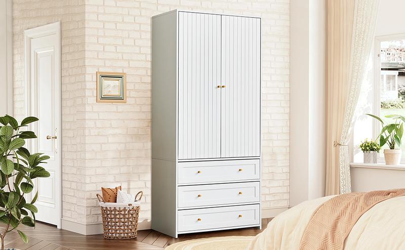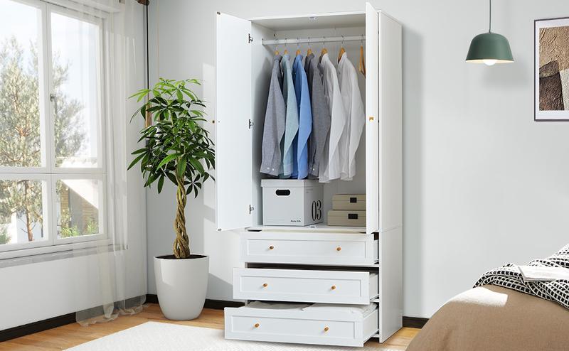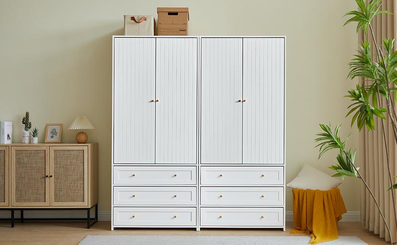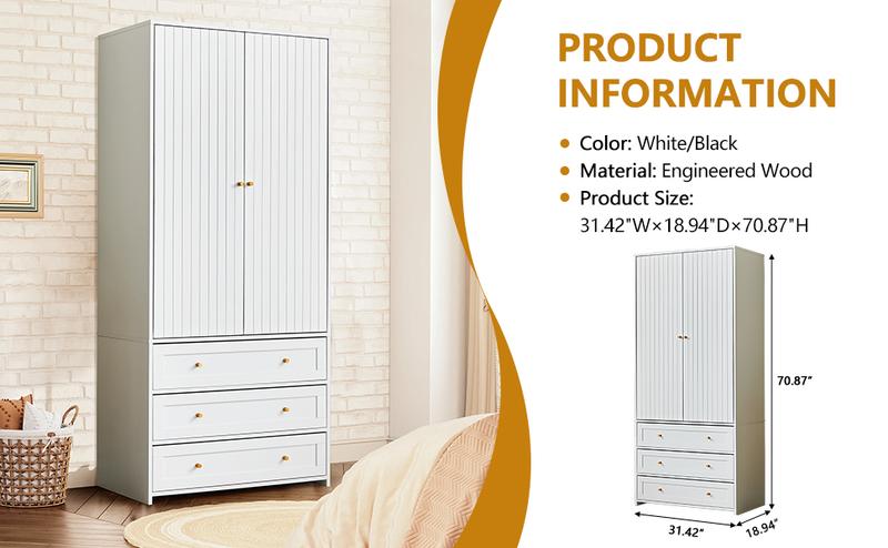 - 【Stil elegant】Acest dulap din lemn este simplu, combinând panouri albe cu mânere aurii pentru a crea un farmec luxos. Acest dulap mare se potrivește bine cu diverse decoruri ale casei.