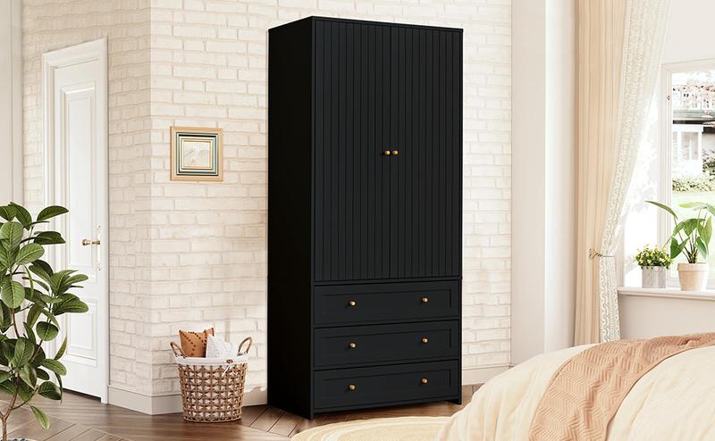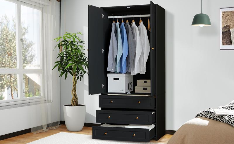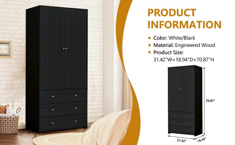 Dulap Giratree 71" Dulap, Dulap din lemn cu 2 uși, 3 sertare, Dulap de depozitare independent din lemn pentru dormitor