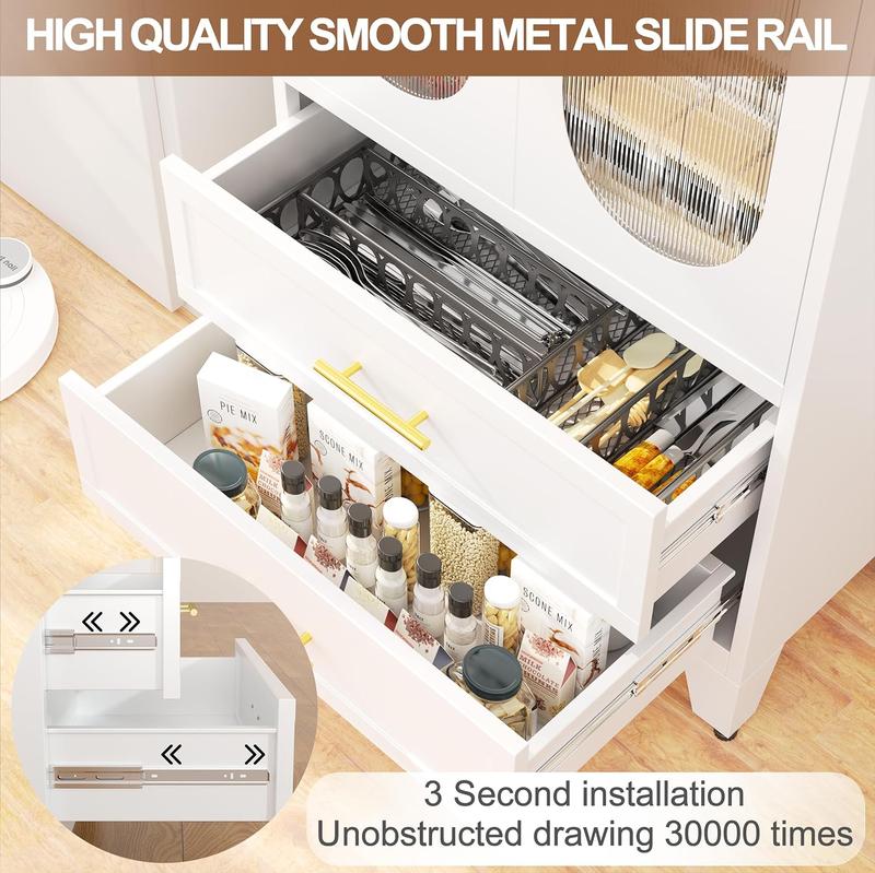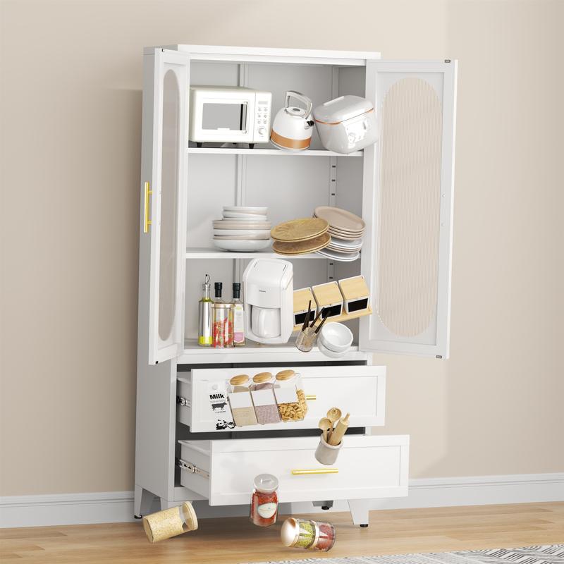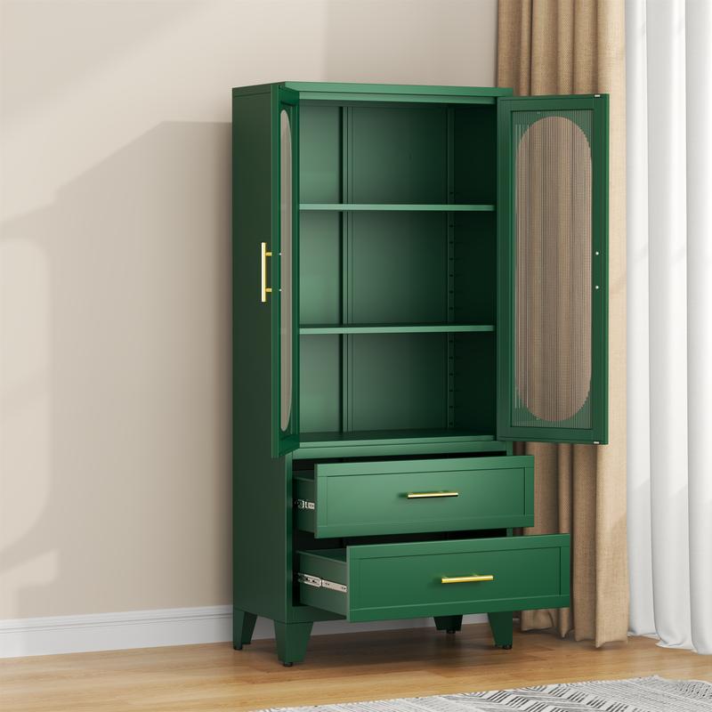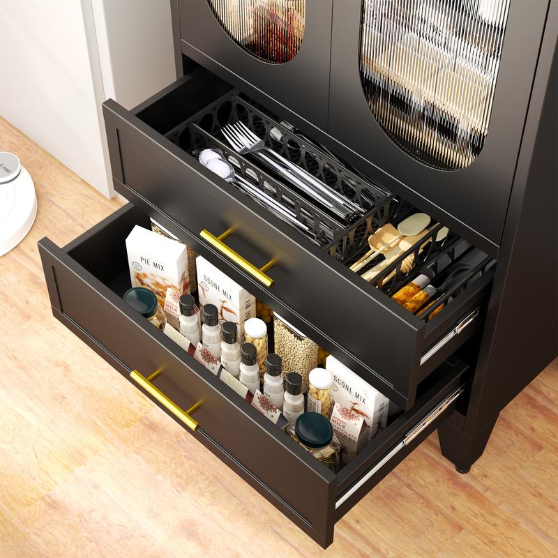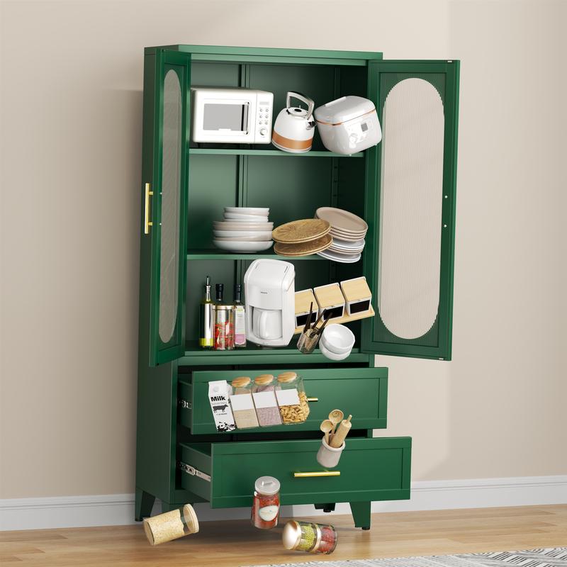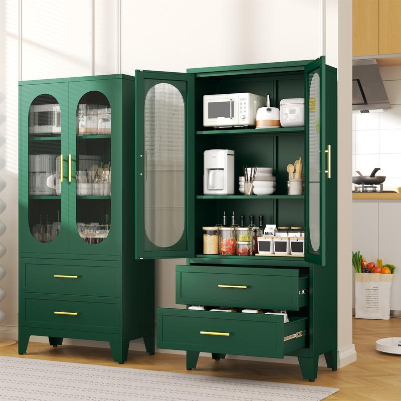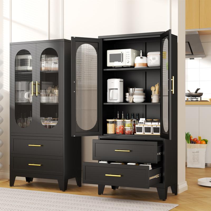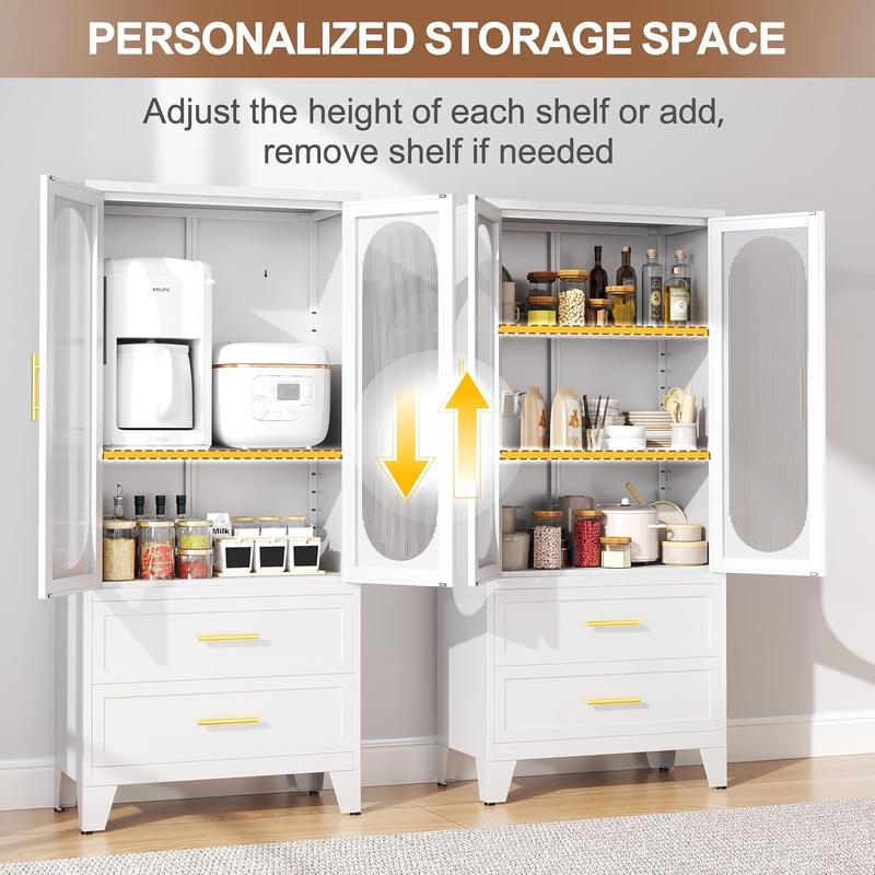 Dulap metalic de depozitare cu 2 uși din sticlă acrilică și 2 rafturi reglabile, dulap de bucătărie cu 2 sertare, dulap de depozitare din oțel cu înălțimea de 61,6" pentru dormitor, bucătărie, organizator de mobilier de baie