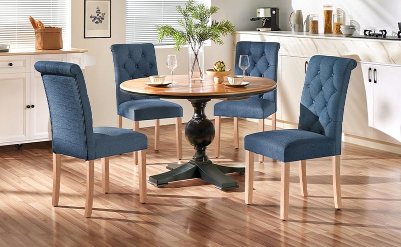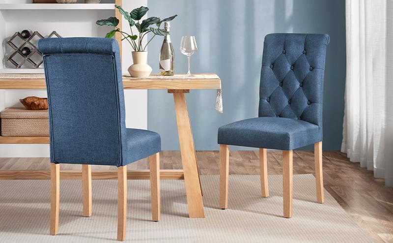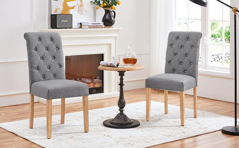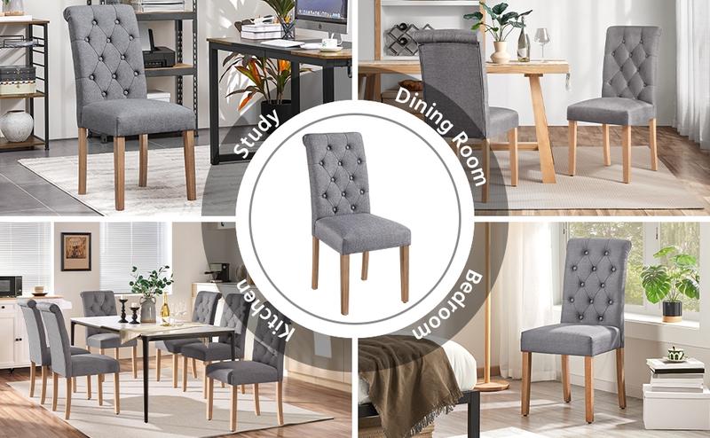 Set de scaune de bucătărie Yaheetech, 2/4 scaune de bucătărie tapițate cu material textil, cu spătar înalt și căptușite, cu picioare din lemn masiv pentru casă, sufragerie, bucătărie