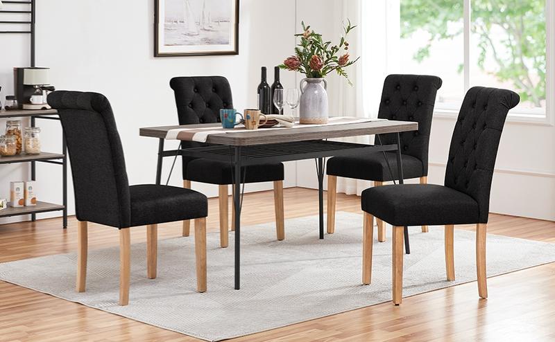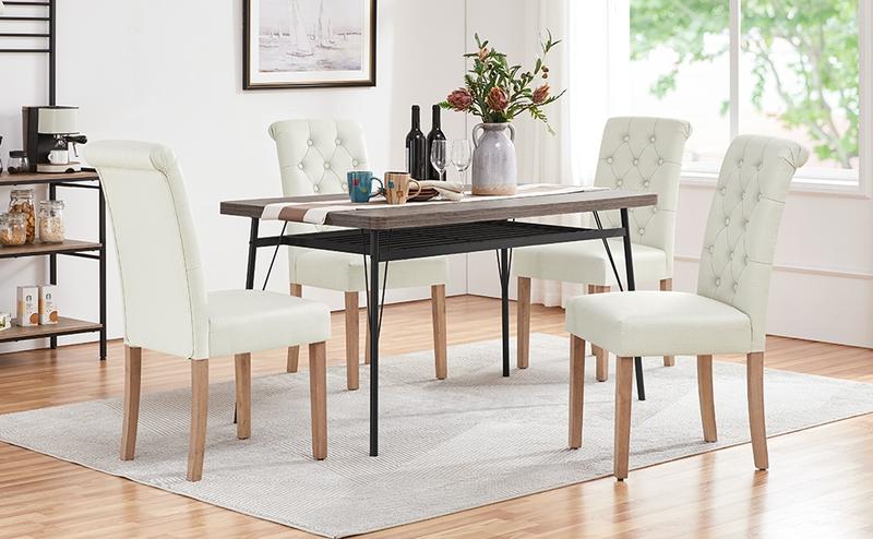 1. Scaune de masă rezistente: Fiecare scaun de masă căptușit cu spumă are o structură solidă cu o capacitate mare de greutate de până la 128 kg, iar picioarele din lemn de cauciuc oferă un suport puternic.