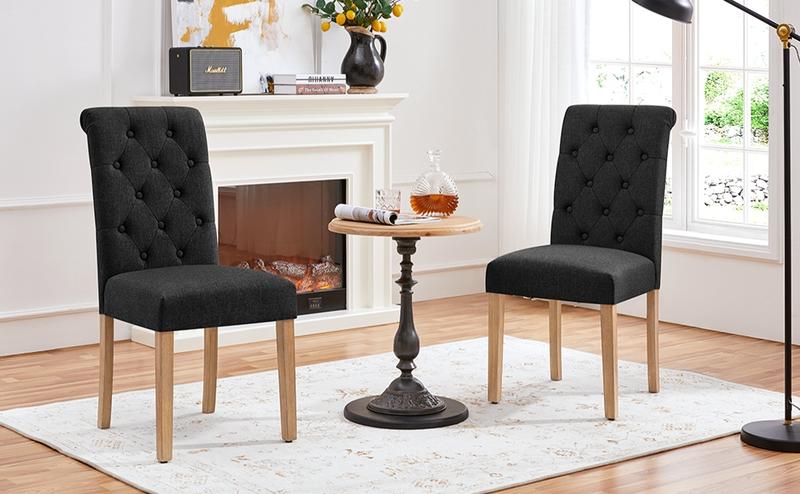 9. Materiale selectate: Aceste scaune de sufragerie din material textil sunt fabricate din lemn robust de hevea, material textil moale din poliester, spumă de înaltă densitate, materiale nețesute și arcuri sinuoase, asigurând durabilitate și o durată lungă de viață.